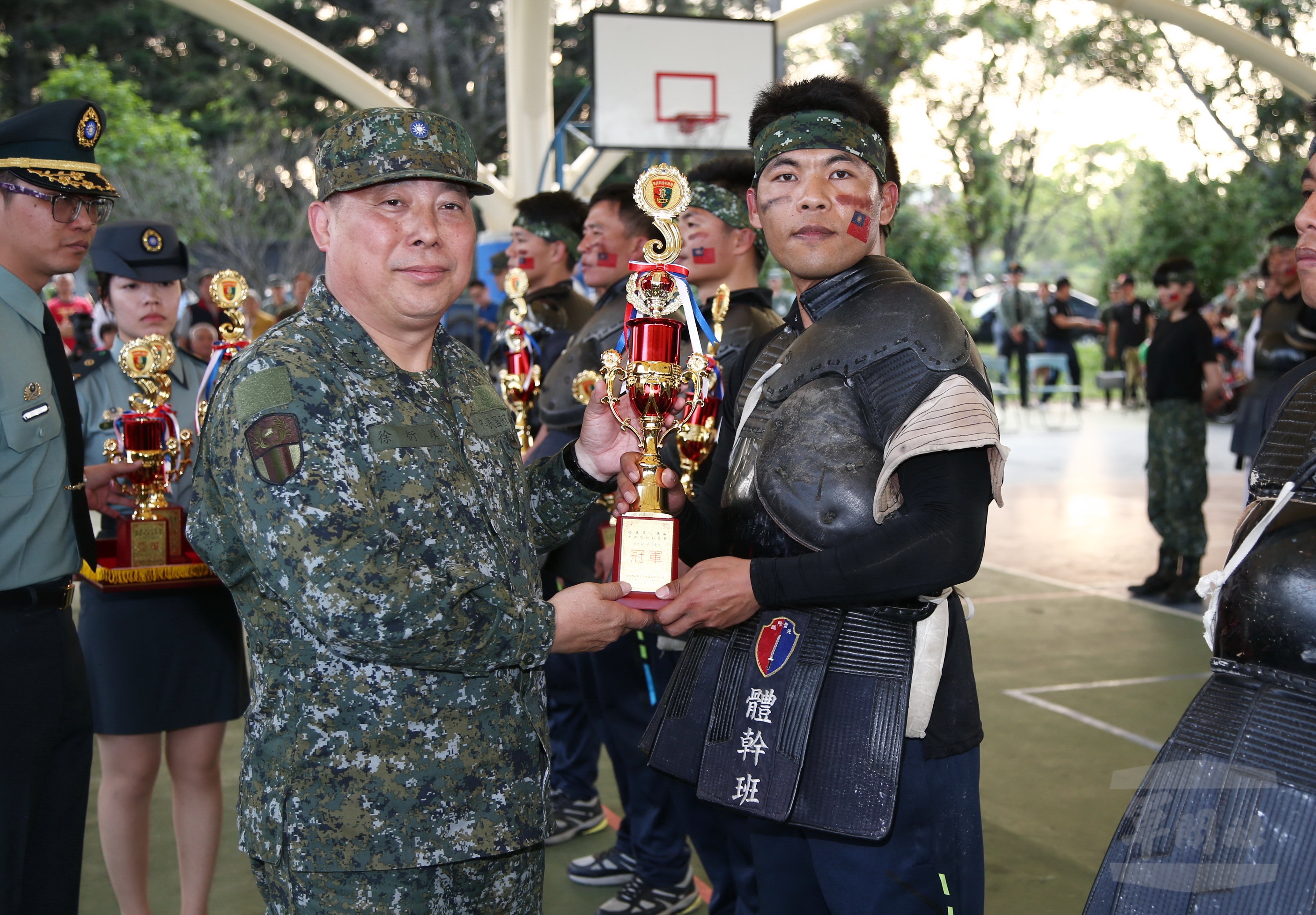 20180329陸軍第6軍團指揮官徐衍璞中將29日頒獎表揚「刺槍競賽」冠、亞軍及美技獎等選手。