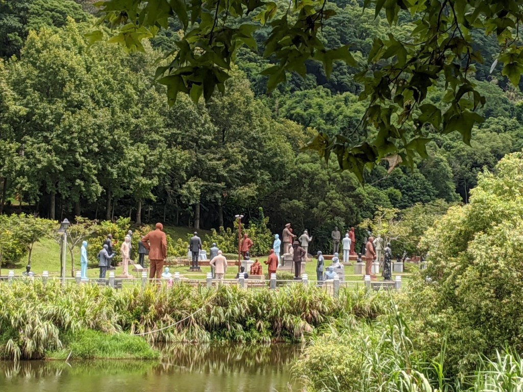 結束行程後搭接駁車到慈湖大門;遠遠看見或坐或立,或軍裝或長袍,或騎馬或持杖的銅像。