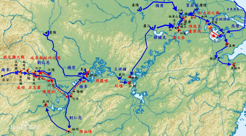 結束南北朝的隋朝滅陳之戰發生於西元588年,在發動攻擊之前足足準備了4年,由隋文帝親自規畫整體戰略。