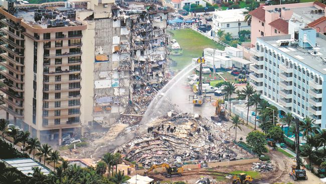 鋼筋水泥石塊的堆壘廢墟仍然沒有移走,6/24 美國佛州公寓樓坍塌迄今已經10天,只找出屍體22具,下落不明的126人,救援速度之牛步,震驚世界。