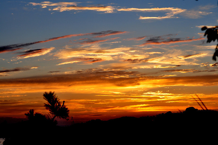 也許太陽意識到自己將停止露面好一陣子,做出了一副就要遠行的模樣,把天邊弄成一片炫麗的色彩,好像在顯示她臨行前的依依不捨,也許還同時看著我們在這裡看不到的異國風光。這時候,那些個子高的建築物負起了送行的任務,把太陽回眸一瞥的風采放映在白色的外牆上,讓我們這些無法親眼目睹她的人也能夠陶醉在自己的想像裡。