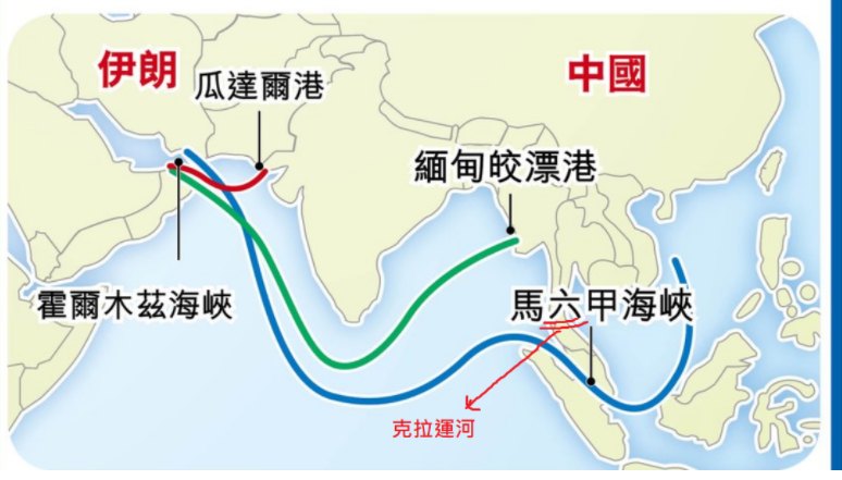 馬六甲海峽是控制中國能源進口、貨櫃出口的咽喉,容易被美國卡喉,中國積極努力,從巴基斯坦、緬甸及泰國分散能源進口路線。