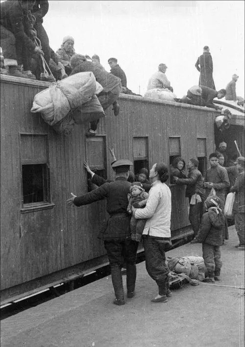 我7歲,爸爸留守南京有任務,需待命,無法離開。媽媽懷了毛毛即將生產,挺個大肚子,在兵慌馬亂中,帶著80多歲裹小腳的老外婆、16歲頑皮的思舜阿姨、還有敏文弟,在人潮洶湧的火車月台擠火車,車頂、車梯都掛滿了人,像推彈夾一樣一個個往裏推,那危險萬狀的鏡頭,今天難以想像。