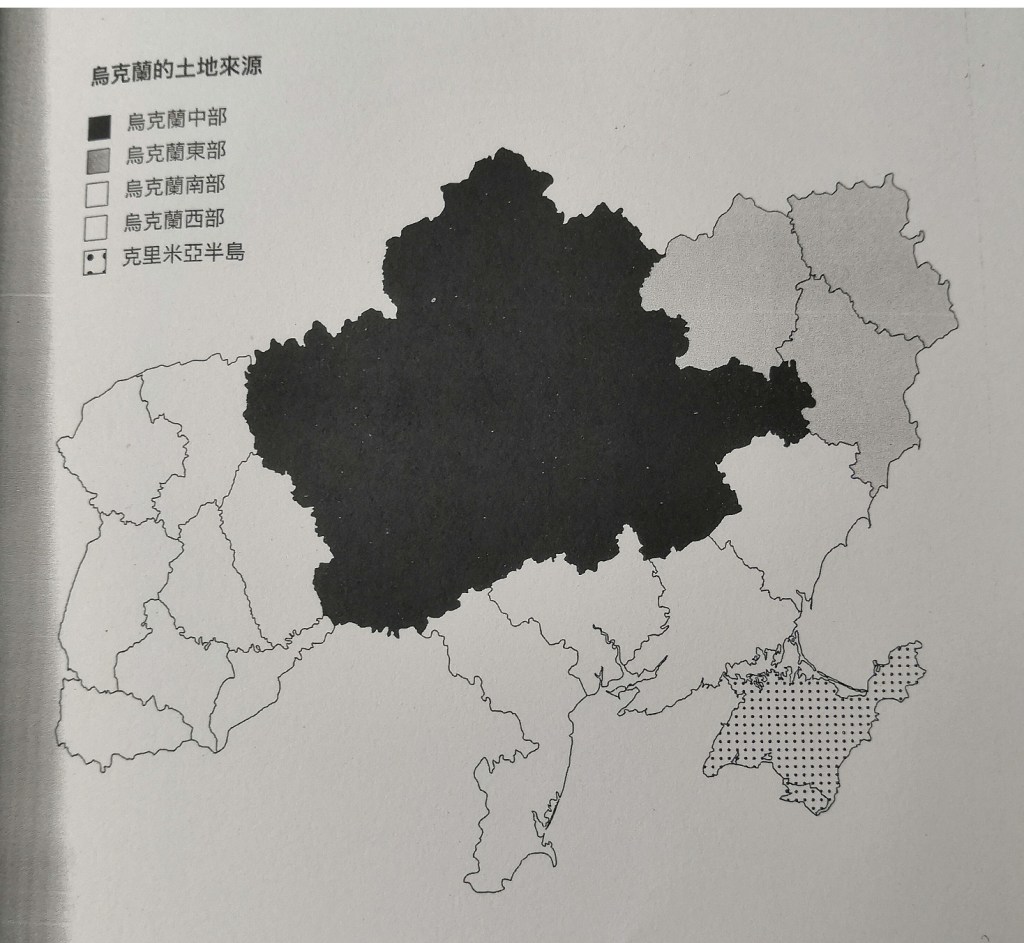 1917年俄羅斯帝國被推翻,蘇維埃俄國成立,扶植建立烏克蘭蘇維埃社會主義共和國,成為蘇聯加盟共和國之一,此時的烏克蘭國僅擁有烏中、烏東、烏南的土地。二戰後烏西地區被劃歸烏克蘭(顯然是蘇聯以戰勝國身份爭取來的)。1954年蘇聯領導人赫魯雪夫把屬於俄羅斯的克里米亞劃歸烏克蘭。這些完成了現代烏克蘭的所有國土。