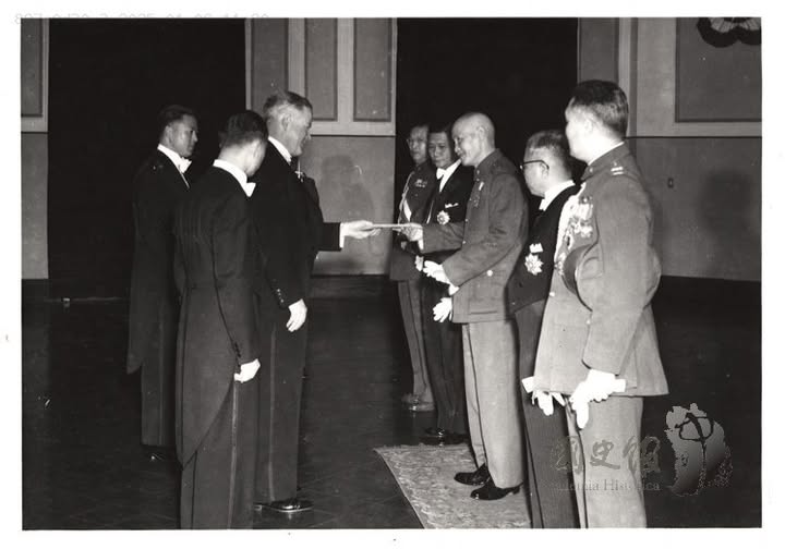 照片說故事。1953年4月2日,美國駐華大使藍欽到總統府,陳遞到任國書,瞧瞧文官在場多穿燕尾禮服,藍欽也穿禮服,多講究的年代,蔣兩側一為葉公超,一位應該是王世杰。