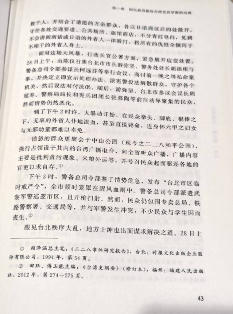 「戰後談台灣史的人,都稱讚台灣人堅決勇敢地反抗。台灣人所以會拼命反抗,是日本軍紀異常敗壞之故。有駐進村莊的日本軍,雖然接受村長全家總動員的款待,還要調戲村長的太太,也有把年輕女性綁在長凳上,演出集體強姦的惡行。在埔里的老百姓,一聽到日本軍要來了,就統統逃往山裡面躲起來,只剩下一些行動不便、害重病的父老及留下來照顧的家人,日本軍一來,不由分說地拖出去『試刀』,任意宰殺。」