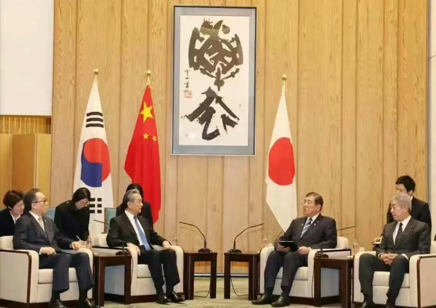 臺灣人只崇拜日本生活中的「解衣文化」,卻不瞭解日本文化常見的視野高度,總是來自中華文化,因此,大陸、日本與韓國三國外長會議在東京舉行,現場會議廳卻高掛很難辨識的「解衣」二字,這幅書法出自日本名家高木聖雨。有人不禁懷疑:難道這是日本大張旗鼓,想把情色風光西傳中、韓?這種幽默只有臺灣人想得出來。