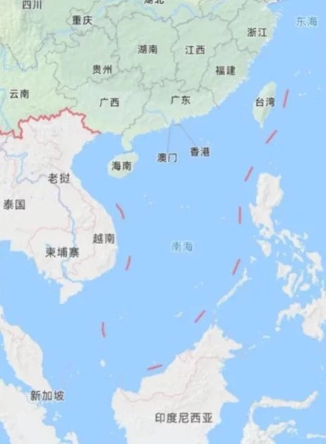1953年中越協商把夜鶯島歸入越南後,取消海南島與越南之間東京灣的兩段,減為九段線。印尼、越南、美國、英國、法國等世界大國及周邊國家都承認九段線。這次新公佈的地圖增加了第十段線,把台灣東部包括蘭嶼、綠島以及宜蘭縣的龜山島及釣魚台都劃在內。