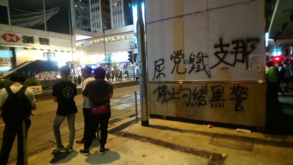 行經尖沙咀警署時就有些緊張了,因為眾人皆向警署方向怒罵呼口號,警署方面偶或有個廣播,馬上就會激起群眾一片回罵,大呼小喝聲浪驚人,還有回以中指的。