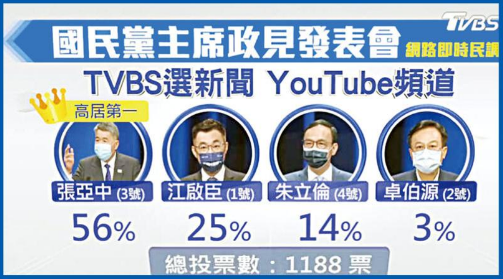這次國民黨黨主席選舉竟有6人參選,包括張亞中、蔡志弘、羅智強、郝龍斌、鄭麗文、卓伯源等。其中最特別的是張亞中教授,已經第三次參選黨主席,前两次在2019年和2021年。張教授上次參選黨主席得票率32.59%,僅次於勝選的朱立倫得票率45.78%,因此這次參選之初他的聲勢不小,然而多家民調結果卻顯示,他不在領先群,幾乎無望獲勝。為何如此?