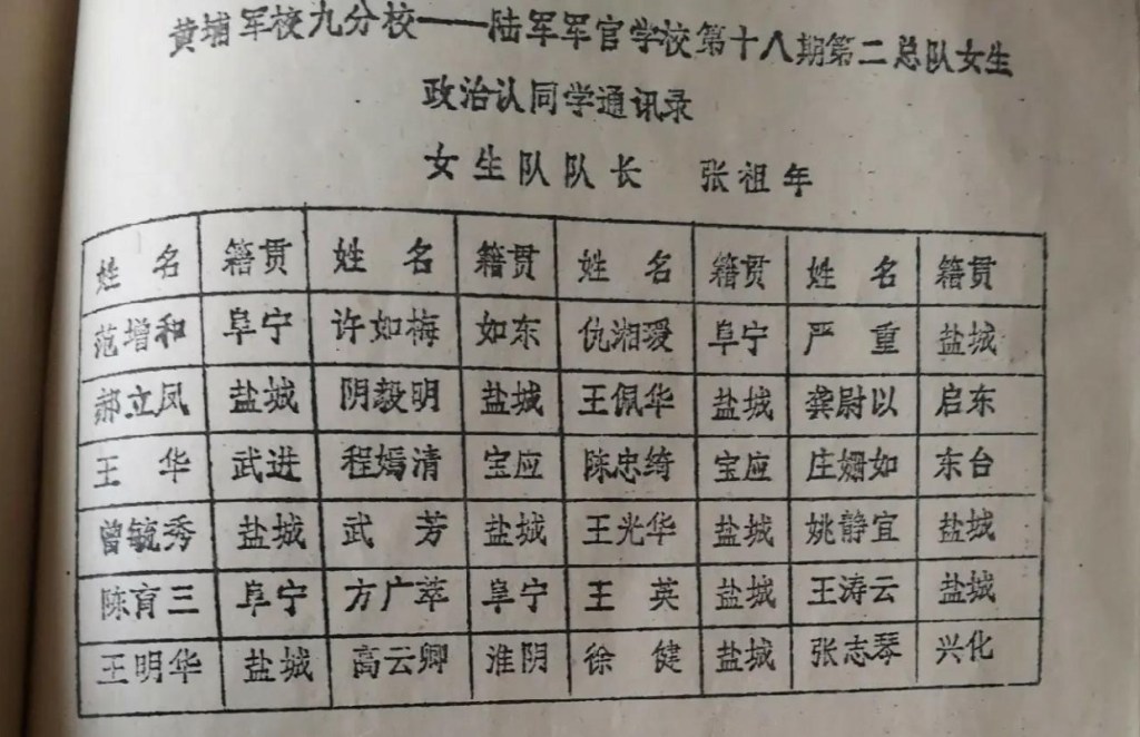 【第九分校第18期第2總隊女生隊24名畢業學員名冊】